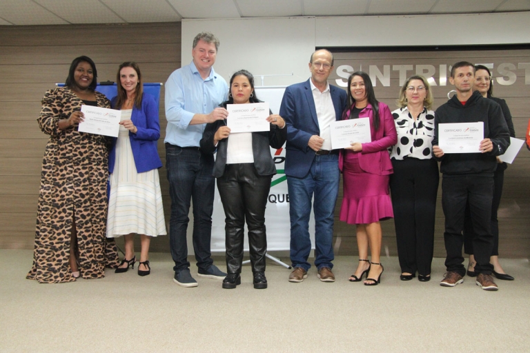 A Escola de Costura, promovida pela Associação das Micro e Pequenas Empresas de Brusque e Região (AmpeBr), formou 89 novos costureiros e costureiras. A solenidade de certificação ocorreu na noite desta quinta-feira, 5 de maio, no auditório do Sintrivest, e reuniu autoridades políticas e empresariais.