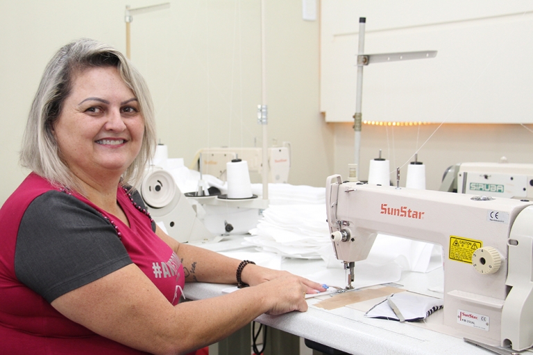 “Ser costureira é uma arte. Tem que ter amor, paciência e muita dedicação. Amo o que eu faço”. A definição é de Sarita Clemente Truppel, costureira há 25 anos. A brusquense conta que aprendeu o ofício por meio de um curso técnico e desde então passou a dedicar seu tempo entre a família, linhas, tecidos e máquinas. Além disso, ser costureira também está na família, já que além dela, a mãe e duas tias também seguiram a profissão. Moradora do bairro Nova Brasília, ela conta que se orgulha do trabalho, principalmente em poder fazer parte do projeto ‘Amor pela Costura’. “É muito gratificante ensinar os alunos a arte de costurar. E produzir máscaras foi a maneira que nós, professoras, encontramos para ajudar as pessoas que muitas vezes não têm condições financeiras de adquirir, já que neste momento muitas famílias trabalham só para conseguir pagar o aluguel e alimentação”, declara.