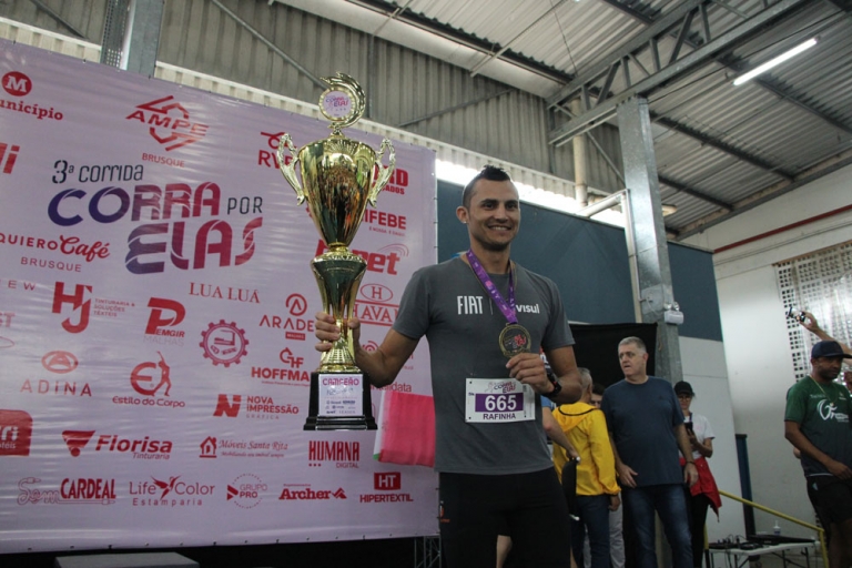 Pelo terceiro ano, o campeão geral dos 5km masculino foi o atleta Rafinha de Oliveira, de Brusque, que comemorou muito o resultado. “É a minha terceira vitória consecutiva nesta prova. Eu estava preparado, focado e treinado para vencer. Só tenho a agradecer meus patrocinadores porque se não fosse eles, não teria força para treinar e competir. Ano que vem vou treinar ainda mais para ganhar a quarta corrida seguida”.