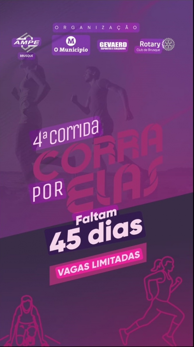 Falta pouco mais de 45 dias para a 4ª edição da Corra por Elas, corrida beneficente realizada pela Associação das Micro e Pequenas Empresas de Brusque e Região (AmpeBr), em parceria com o Rotary Club, jornal O Município e Gevaerd Esportes.