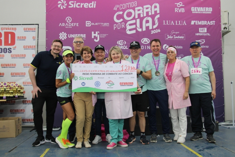 Com a participação de cerca de 1,4 mil atletas, esta edição da Corra por Elas ultrapassou a marca dos R$ 100 mil arrecadados. Com isso, o total doado para a Rede Feminina de Combate ao Câncer de Brusque foi de R$ 123.813,00.