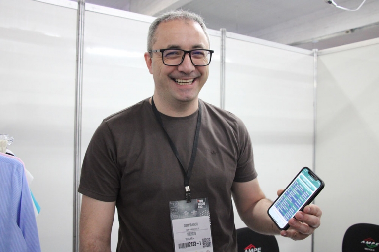 Ele foi um dos compradores que aprovou o uso do QR Code no showroom e a extensão do sistema, para chamar os fornecedores. “Desde que o QR Code foi implementado na feira começamos a usar, e agora, com o aplicativo, facilitou ainda mais. Conseguimos escolher quais fornecedores queremos conversar, chamamos na hora quisermos, o agilizou muito todo o processo de negociações”, pontua Garcia.