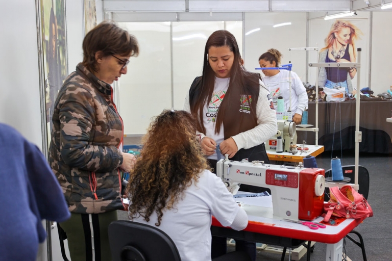 Outra novidade desta edição é o espaço montado para a Escola de Costura da AmpeBr, dentro da Pronegócio. Na sala dedicada para o projeto, as alunas do curso confeccionam suas peças auxiliadas pela professora e coordenadora Maria Isabel Daroceski. O objetivo do espaço, é divulgar o projeto realizado pela AmpeBr, que oferece o curso básico de costura de forma gratuita, para formar novos profissionais para a área de confecção.