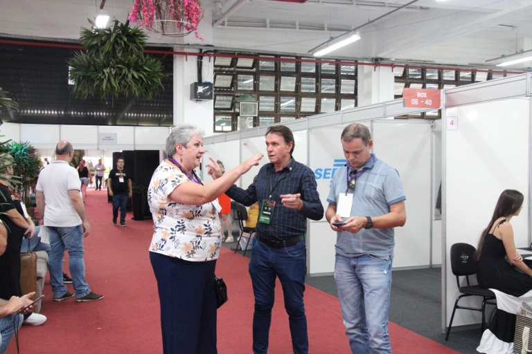 A presidente da Fampesc aproveitou a oportunidade para conhecer um pouco mais sobre a estrutura e funcionamento do evento, que conta com um sistema próprio para realização das negociações.