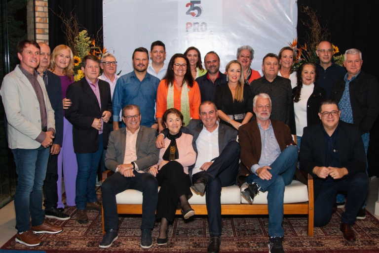 Um dos momentos marcantes da noite foi a homenagem da entidade a todos os ex-presidentes, que a cada gestão contribuíram para o crescimento e a força da Pronegócio: Carlos Reinoldo Hildebrand; José Luiz Cunha; o saudoso José Ângelo Voltolini; Rogério Schwinden; Roberto Gaspar; Ailton Gripa; Tarcísio Tomasi; José Augusto Guireli; Anilcon Schulenburg; Luiz Carlos Rosin; e Ademir José Jorge.