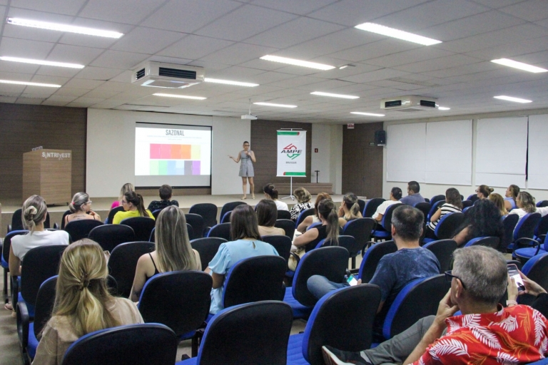 O Núcleo Têxtil da Associação das Micro e Pequenas Empresas de Brusque e Região (AmpeBr), em parceria com o Sebrae/SC, promoveu na noite de quinta-feira, 29 de fevereiro, no auditório do Sintrivest, a palestra “Tendências Verão 2024/25”, ministrada pela especialista Simone Telles.