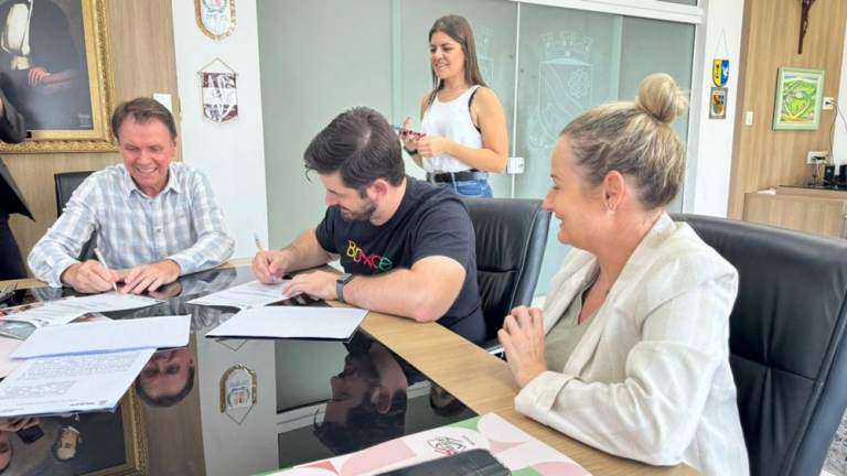 O presidente da Associação das Micro e Pequenas Empresas de Brusque e Região (AmpeBr), Mauro Schoening, acompanhado de diretores da entidade, assinou na manhã de quinta-feira, 30 de novembro, o contrato com a Prefeitura de Brusque para a continuidade do projeto Escola de Costura. A parceria é válida até 30 de novembro de 2024. A assinatura foi realizada no gabinete do prefeito André Vechi, e contou com a presença da secretária de Desenvolvimento Econômico e Turismo, Ana Helena Boos.