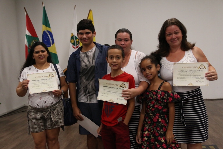 A formatura aconteceu no auditório da Faculdade Uniasselvi, e reuniu familiares e amigos dos formandos, a diretoria da AmpeBr, as idealizadoras e professoras do projeto, o vice-prefeito de Brusque, José Ari Vequi, o comandante da 7ª Região da Polícia Militar de Santa Catarina, coronel Moacir Gomes Ribeiro, o major Heintje Heerdt representando o 18º Batalhão da PM de Brusque, o sargento Jean Sofiatti representando o Corpo de Bombeiros de Brusque, o secretário municipal de Desenvolvimento Econômico, João Beuting, o vereador Sebastião Lima e a diretora da Uniasselvi, Simone Dalbosco.