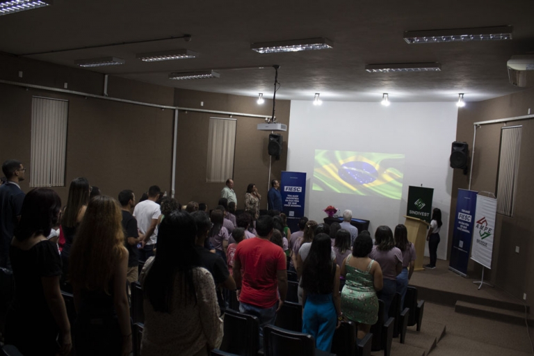 Realizada no Auditório do Senai, a solenidade de conclusão de curso contou com a presença dos diretores da AmpeBr, Pierre Grotti e Wolfgang Kurt Busching, e de outras lideranças de entidades.