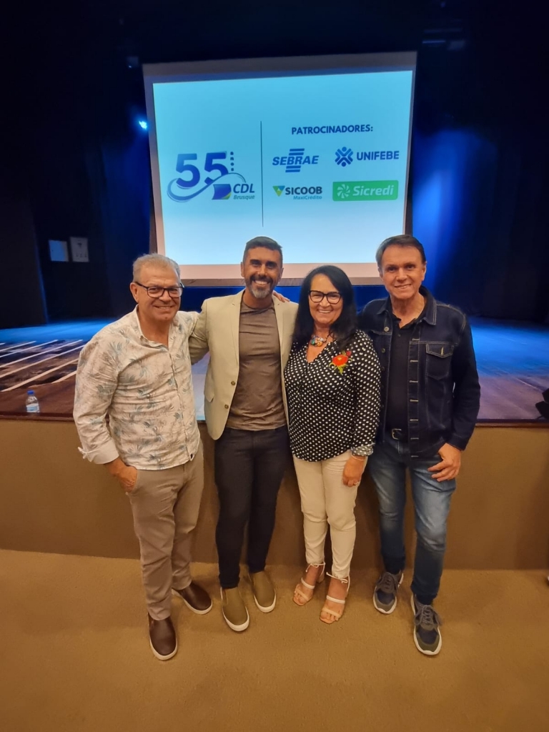 Na sexta-feira, 7 de junho, o presidente da Associação das Micro e Pequenas Empresas de Brusque e Região (AmpeBr), Mauro Schoening, e os diretores Aparecida Leite e Irajá Trindade, participaram do evento em comemoração aos 55 anos da Câmara de Dirigentes Lojistas de Brusque (CDL Brusque).