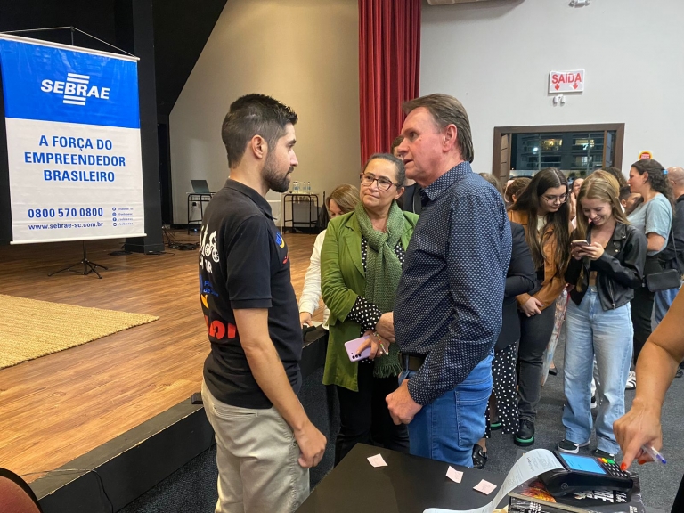 Na noite de quarta-feira, 9 de outubro, o presidente da Associação das Micro e Pequenas Empresas de Brusque e Região (AmpeBr), Mauro Schoening; e a diretora da entidade, Aparecida Leite, participaram da palestra “A reinvenção da vida”, com o ex-atleta profissional de mountain bike, Ilson Júnior, que se recuperou de uma tetraplegia.