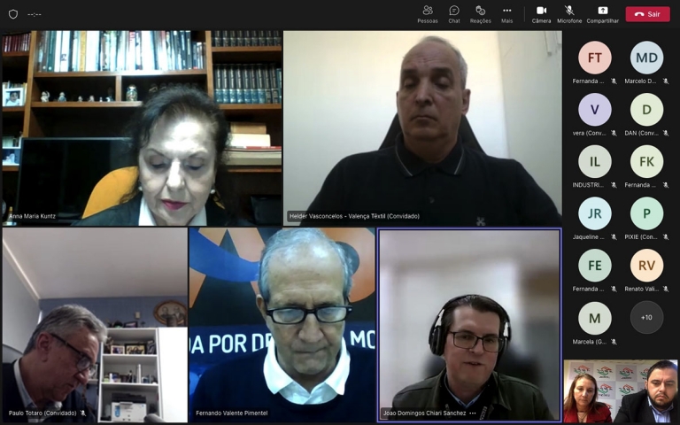A reunião, realizada de forma on-line, contou com diversas lideranças regionais e nacionais, como o presidente da ABIT, Fernando Pimentel; o diretor da Escola SENAI/SP, João Domingos Chiari Sanchez, entre outros.