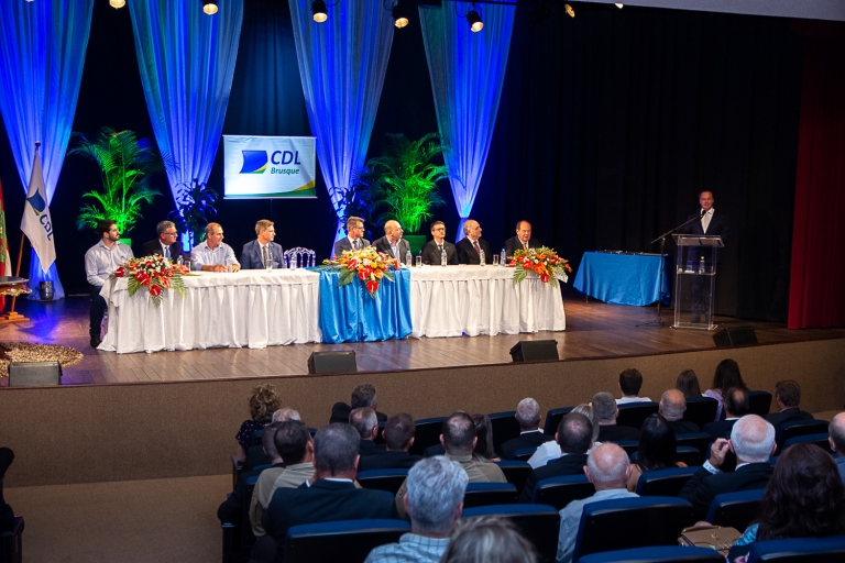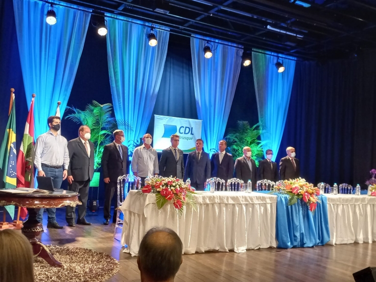 A Associação das Micro e Pequenas Empresas de Brusque e Região (AmpeBr) participou na noite de quarta-feira, 16 de fevereiro, da solenidade de posse da nova diretoria da Câmara de Dirigentes Lojistas de Brusque (CDL Brusque) para gestão 2022/2023. O evento foi realizado no Centro Empresarial, Social e Cultural de Brusque (CESCB), onde fica a sede da CDL Brusque, e reuniu liderençadas empresariais e políticas, não só da região, mas também nacionais e estaduais como o presidente do SPC Brasil, Roque Pellizzaro Júnior; representante da FCDL/SC o presidente do Imetro, Rudinei Luís Floriano, representando o governo do Estado, entre outros.