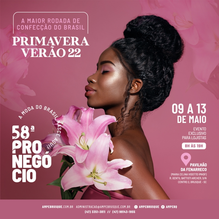 Na oportunidade serão apresentadas as principais tendências para a estação nos segmentos masculino, feminino, infantil, plus size e fitness, com informações assertivas para a elaboração das novas coleções, que deverão ser apresentadas na 58ª Pronegócio, que acontece em maio. A palestra acontece às 19h no Cine Gracher Havan Brusque. Para participar é necessário realizar a inscrição, gratuita, através do link: bit.ly/3slcK8R.