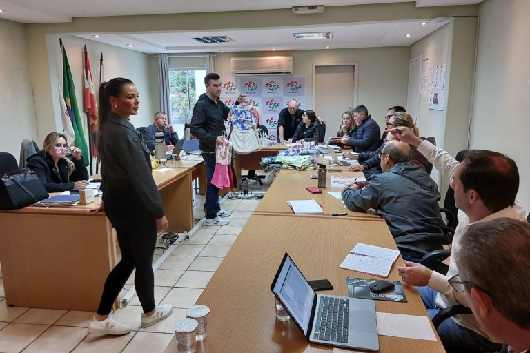 A Associação das Micro e Pequenas Empresas de Brusque e Região (AmpeBr) realizou, nos dias 24 e 25 de junho, uma mini rodada de negócios em sua sede. Na oportunidade, dois compradores, representando mais de 100 lojas, puderam adquirir a coleção Primavera e Verão 2024/25 de cerca de 20 fabricantes de Brusque e região.