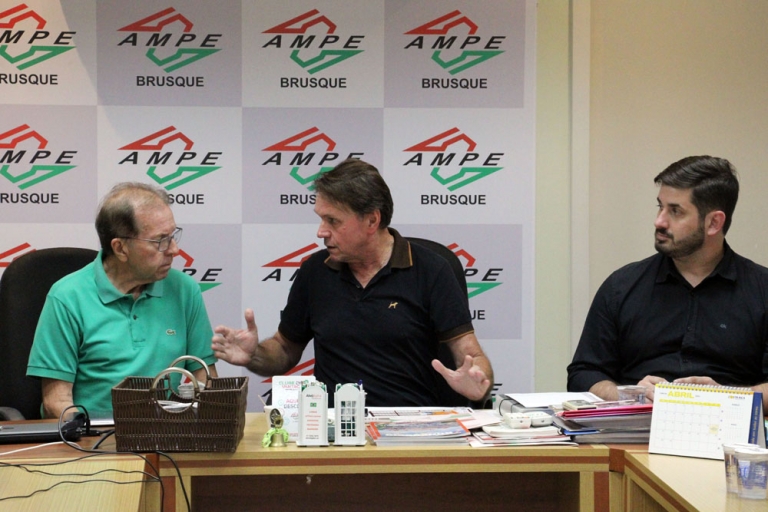Na noite de segunda-feira, 8 de abril, a Associação das Micro e Pequenas Empresas de Brusque e Região (AmpeBr) recebeu, em sua reunião de diretoria, o prefeito de Brusque, André Vechi; o vice, André (Deco) Batisti; e o secretário de Desenvolvimento Econômico e Turismo, Valdir Walendowsky. Na oportunidade, foram apresentadas atividades desenvolvidas pela entidade, bem como o poder público realizou um balanço de obras e ações realizadas nos últimos seis meses de governo. Além disso, o presidente da AmpeBr, Mauro Schoening, acordou a reserva do Pavilhão da Fenarreco para a realização das edições da Pronegócio em 2025.