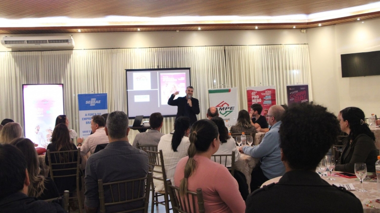 Com palestra do consultor de vendas, Rosimar Comandolli, o evento reuniu cerca de 80 fabricantes da região que têm o objetivo de ampliar suas vendas durante a maior rodada de confecção do Brasil, que acontece de 12 a 15 de agosto, em Brusque, e é promovida pela AmpeBr com patrocínio do Sebrae.