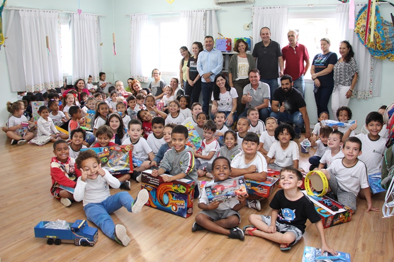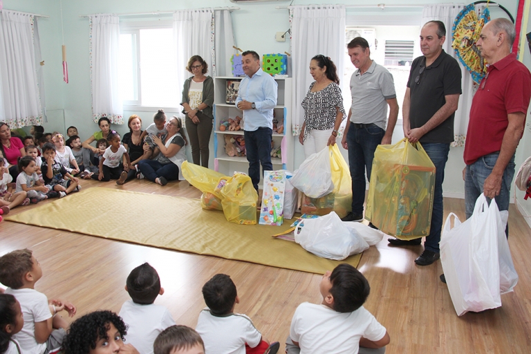 A Associação das Micro e Pequenas Empresas de Brusque e Região (AmpeBr) realizou na manhã desta segunda-feira, 9 de dezembro, a doação de 60 brinquedos para o Centro de Educação Infantil Benta Vanolli, localizado na rua Azambuja. A ação solidária da entidade é realizada há anos e mais uma vez colaborou para o acervo de brinquedos do educandário e fez a alegria das 120 crianças, de 2 a 6 anos, que frequentam o mesmo.