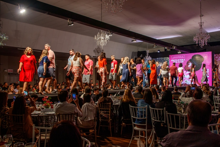 A noite de terça-feira, 10 de maio, foi especial para a Associação das Micro e Pequenas Empresas de Brusque e Região (AmpeBr), com a realização do Desfile da 58ª Pronegócio. Realizado no Clube Santos Dumont, o evento foi retomado após dois anos, já que não havia mais sido realizado por conta da pandemia. Ao todo, cerca de 500 pessoas, entre compradores e fabricantes da rodada, autoridades, convidados e imprensa prestigiaram o desfile, que teve como tema “O Colorido do Verão – Vida e Flores”, organizado pela Agência Lucky 70.