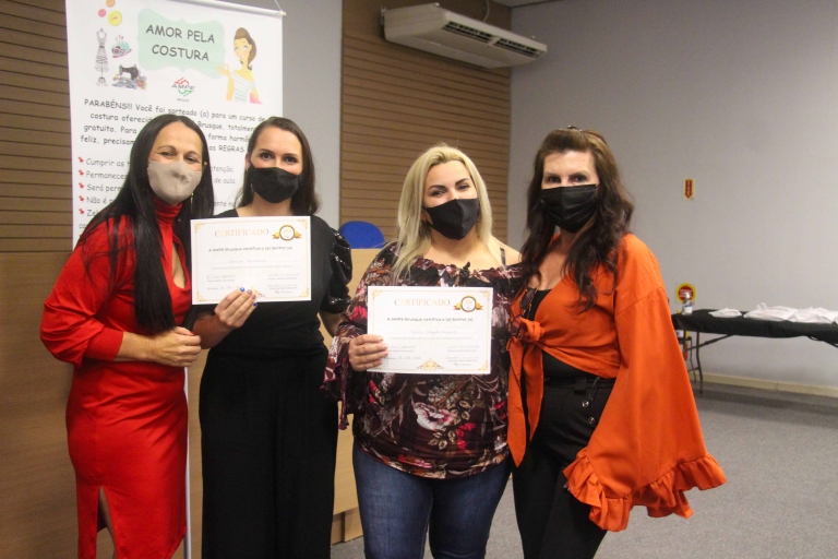 Iniciado no ano de 2019, o curso tem como professoras as profissionais Maria Isabel Daroceski e Marlei Salete Machado. Durante a formatura, a presidente Sandra apresentou o novo nome do projeto, que passa a se chamar agora ‘Escola de Costura - Curso Profissionalizante de Costureira’. “O projeto continua, nos mesmos moldes. São módulos de três em três meses onde elas aprendem uma costura básica e com isso já podem se inserir no mercado de trabalho. As próximas turmas inclusive já estão começando neste mês de setembro”, explica.