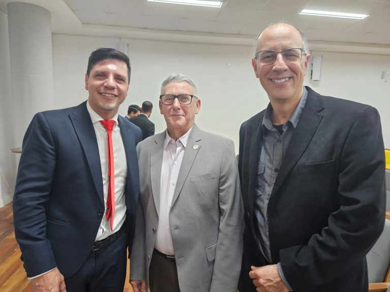 Os diretores da Associação das Micro e Pequenas Empresas de Brusque e Região (AmpeBr), Carlos Alberto Grão Velloso e Wilson Pedro Bernardi, participaram da solenidade de posse da nova diretoria da Ampe de Itajaí.