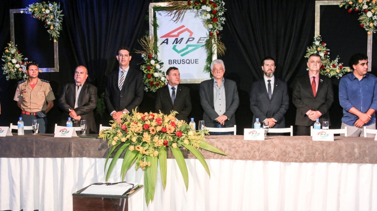 Mais um momento importante na trajetória da Associação das Micro e Pequenas Empresas de Brusque e Região (AmpeBr) aconteceu na noite de quinta-feira, 21 de fevereiro, com a posse da nova Diretoria e Conselhos Deliberativo e Fiscal da entidade. A Sociedade Esportiva Bandeirante foi o local escolhido para a solenidade, que contou com a presença de diversas autoridades civis e militares, além de convidados, associados e parceiros da AmpeBr.
