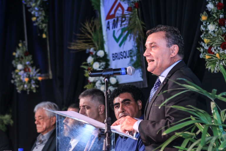 O nome da AmpeBr e o trabalho que desenvolve no município, especialmente com as rodadas de negócio, Pronegócio, sendo hoje quatro edições por ano, foi enaltecido por diversas autoridades. O presidente da Federação das Associações de Micro e Pequenas Empresas e Empreendedor Individual de Santa Catarina – FAMPESC, Alcides Andrade, lembrou que muitos empreendedores até gostariam de implantar rodadas de negócios semelhantes à Pronegócio em seus estados, porém, o diferencial do empreendedor catarinense e empreendedor brusquense em bem receber e bem acolher clientes de todo o país, é algo que jamais poderá ser copiado em qualquer outra região do Brasil. “A AmpeBr para nós é uma referência em associativismo de negócios, desenvolve com muita excelência a Pronegócio, rodadas que trazem centenas de clientes, lojistas de todo o Brasil para comprar, o que ajuda muito a movimentar a economia não só da região, mas do estado. Para nós é uma alegria muito grande estar prestigiando essa posse e reconhecer o quanto a Pronegócio e a AmpeBr são importantes dentro do Sistema Fampesc”, ressaltou.