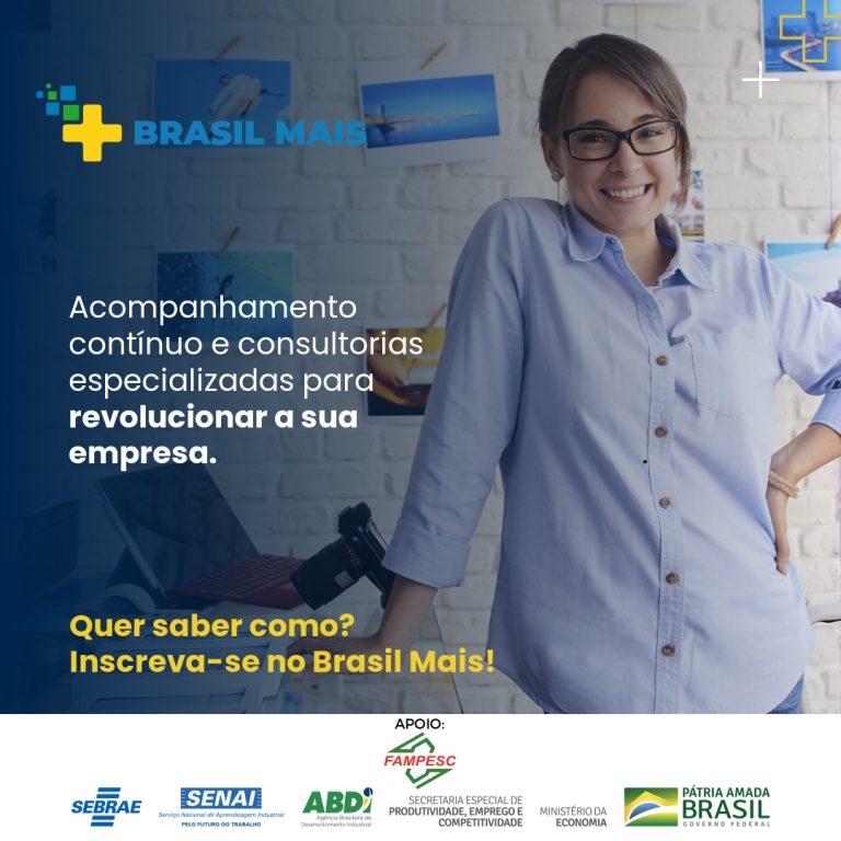 O Programa Brasil Mais tem como objetivo desenvolver inovações focadas no aumento de vendas, aprimorando capacidades gerenciais, produtivas e digitais de empresas brasileiras, promovendo melhorias rápidas, de baixo custo e alto impacto para os empresários catarinenses, gerando aumento da produtividade e da competitividade nas micro e pequenas empresas.