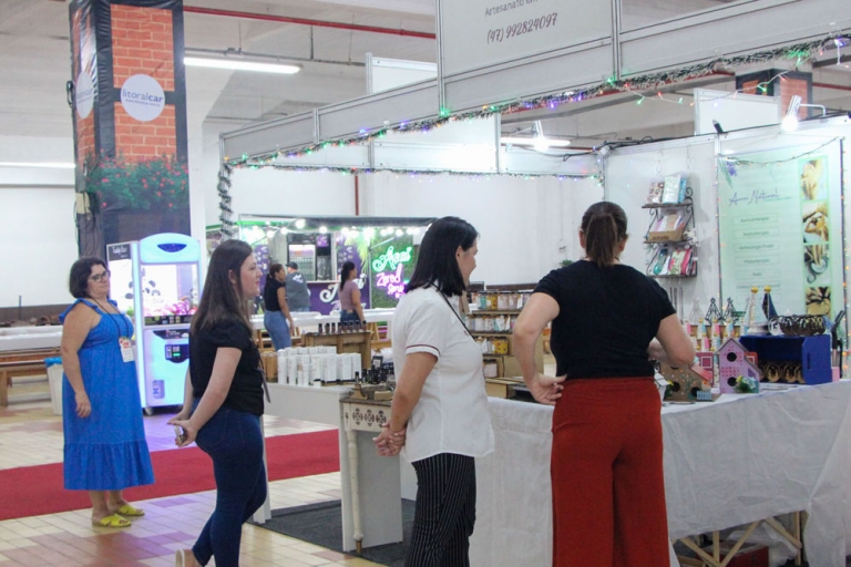 Com cerca de 60 expositores, foi aberto na noite desta quinta-feira, 7 de dezembro, o Natal Solidário - Feira Empreender. Promovida pelo Núcleo das Mulheres Empreendedoras da Associação das Micro e Pequenas Empresas de Brusque e Região (AmpeBr), a feira acontece até o dia 17 de dezembro, no Pavilhão Maria Celina Vidotto Imhof (Pavilhão da Fenarreco).