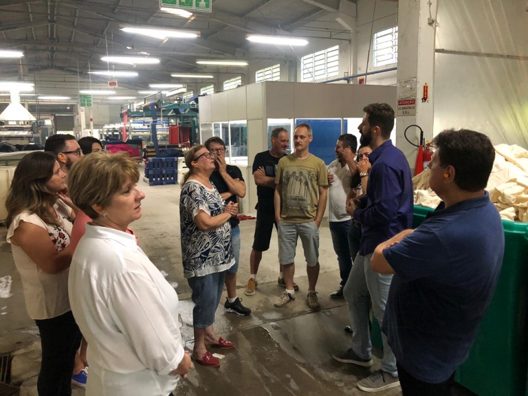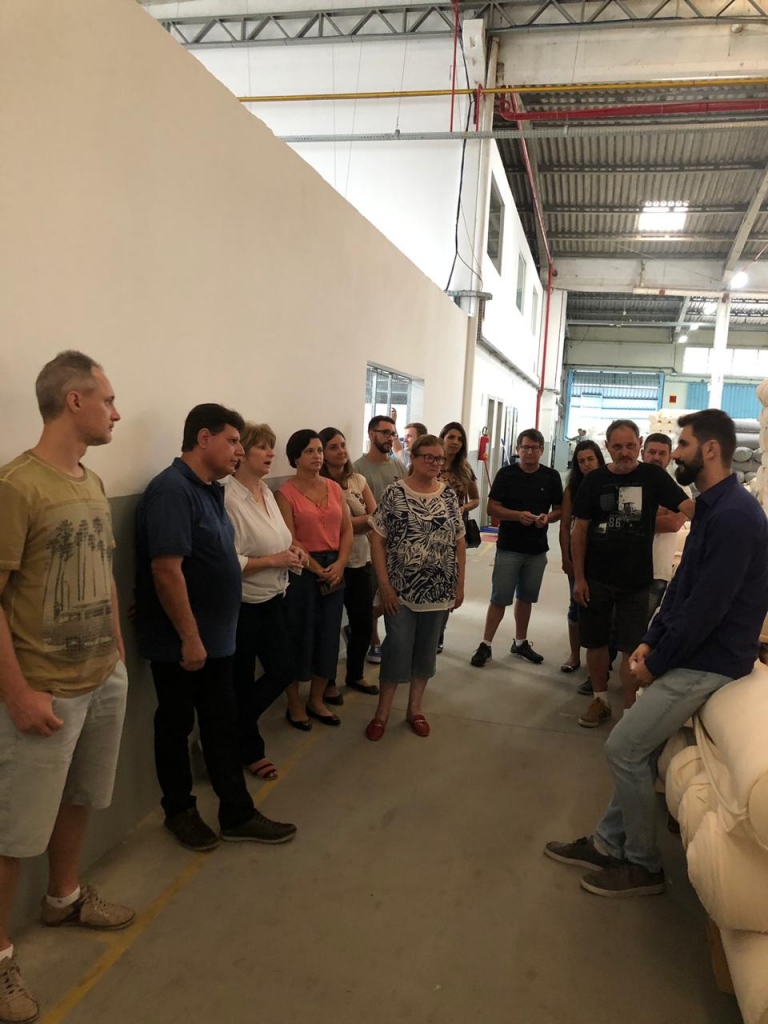 Ao longo de cerca de 1h30, o grupo conheceu todos os setores e produtos da empresa, especialista em serviços de tingimento e acabamento em todas as composições de fibras naturais e sintéticas. A visita foi guiada por um dos diretores da Giracor Têxtil, Everton Girardi que explicou todos os processos e esclareceu dúvidas pertinentes.