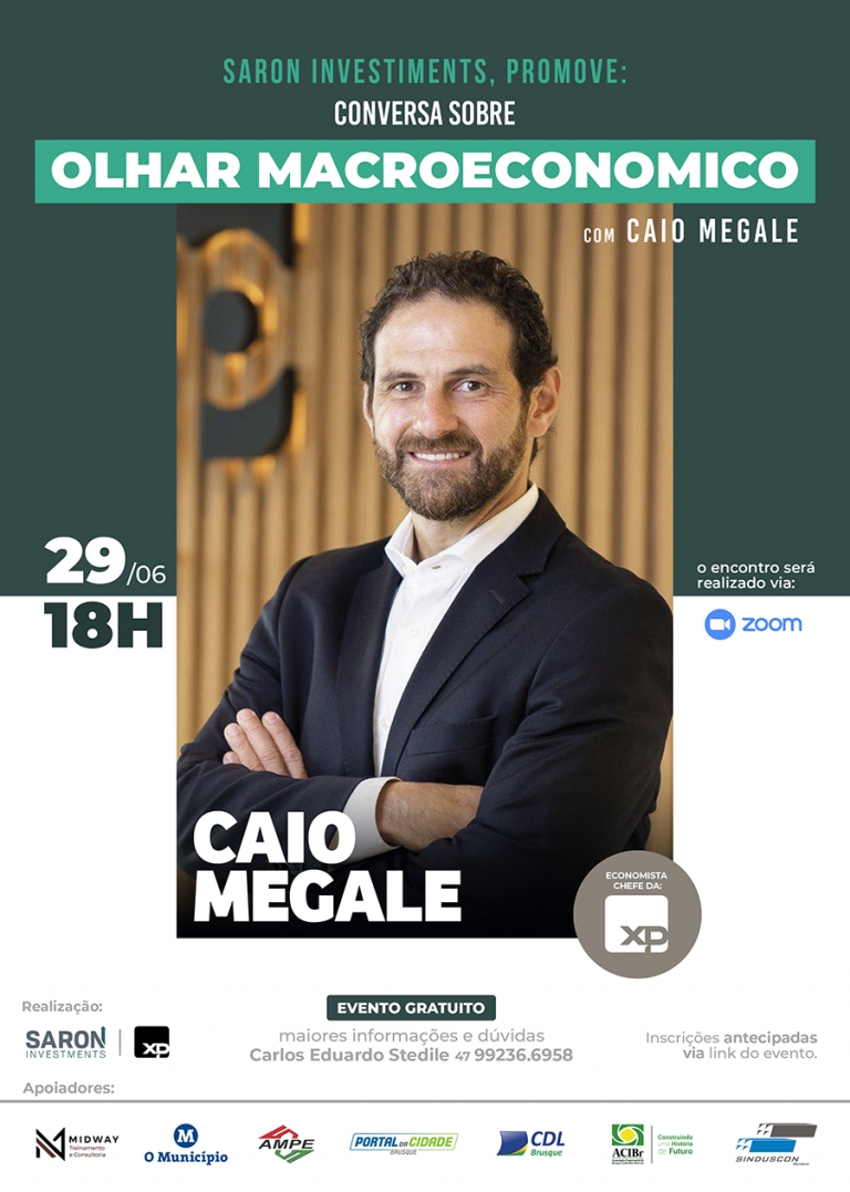 Nesta terça-feira, 29 de junho, será realizada de forma on-line a palestra “Olhar Macroeconômico”, uma conversa com o economista-chefe da XP Investimentos e ex-diretor na Secretaria Especial da Fazenda no Ministério da Economia, Caio Megale.