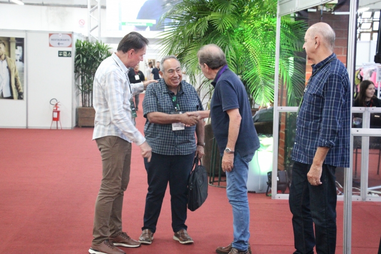 O presidente da entidade mineira esteve na rodada pela primeira vez e pode conhecer a estrutura e funcionamento do evento, que conta com um sistema próprio de negociações. Ele elogiou a AmpeBr pela organização e realização da Pronegócio. “Um amigo me convidou para vir conhecer e me disse que era um modelo diferente de negócios. Frequento muitas feiras de confecção, mas desde o momento que entrei aqui me surpreendi com o funcionamento da rodada, o cliente não precisa visitar vários estandes de fabricantes, eles vêm até você isso proporciona um conforto muito grande. Foi uma surpresa muito boa, destaco também o excelente tratamento com o cliente, a AmpeBr está de parabéns”, comentou Donato.