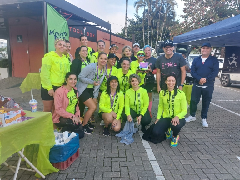 Na manhã de domingo, 21 de julho, o grupo Mulheres de Ferro organizou um treino solidário para a 4ª edição da Corra Por Elas, corrida promovida pela Associação das Micro e Pequenas Empresas de Brusque e Região (AmpeBr). O evento reuniu cerca de 300 pessoas e arrecadou itens de higiene pessoal para pacientes da Rede Feminina de Combate ao Câncer.