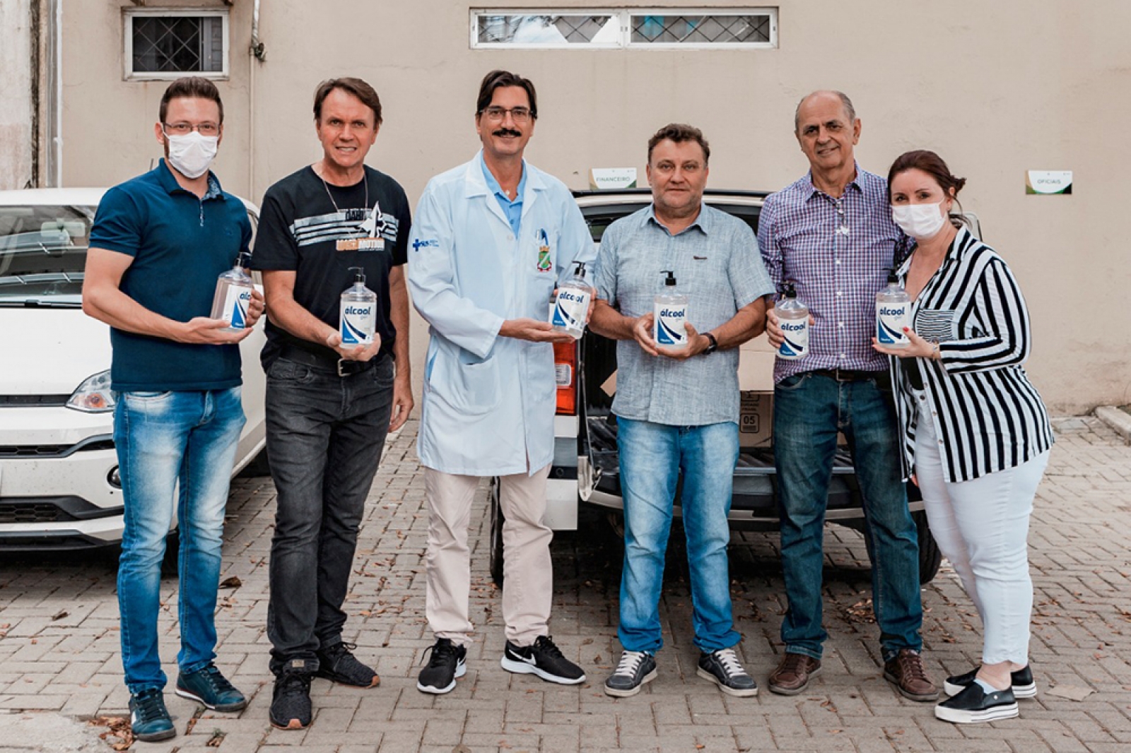 27/03/2020 AmpeBr doa 135 litros de álcool gel para Secretaria de Saúde de Brusque Ação contribuiu para prevenção do Coronavírus no município