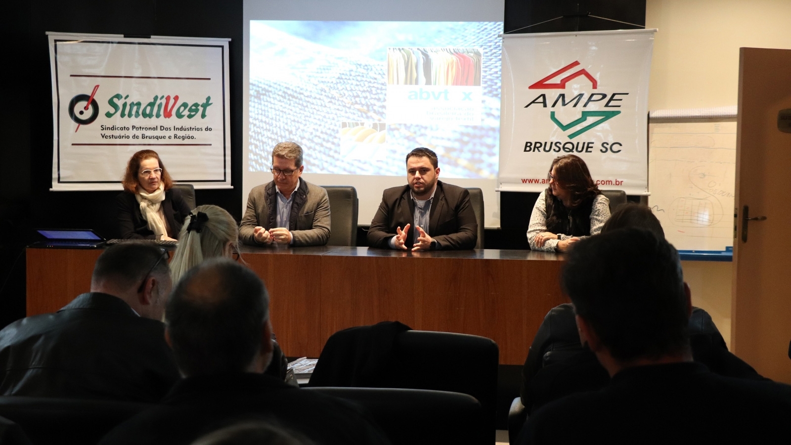06/07/2018 Diretor executivo da ABVTEX participa de encontro com empresários em Brusque Reunião promovida pelo Núcleo de Certificação da AmpeBr, em parceria com o Sindivest, foi realizada na tarde de quarta-feira, 4 de julho
