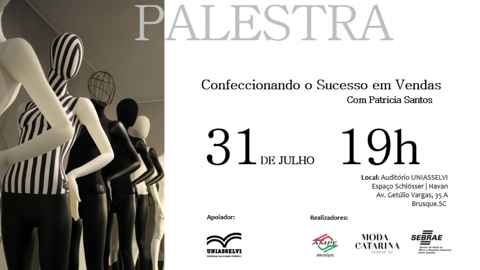 20/09/2018 Palestra ‘Tendências Inverno 2019’ acontece dia 26 de setembro Evento é promovido pela AmpeBr e acontece no Cine Gracher Havan
